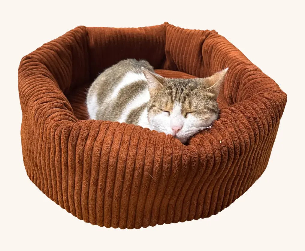 Forme donut moelleuse avec rebords surélevés pour un soutien optimal de la tête et de la nuque. Plusieurs tissus disponibles 100% polyester ultra-doux et résistant, spécialement conçu pour résister aux griffes et à l'usure quotidienne.