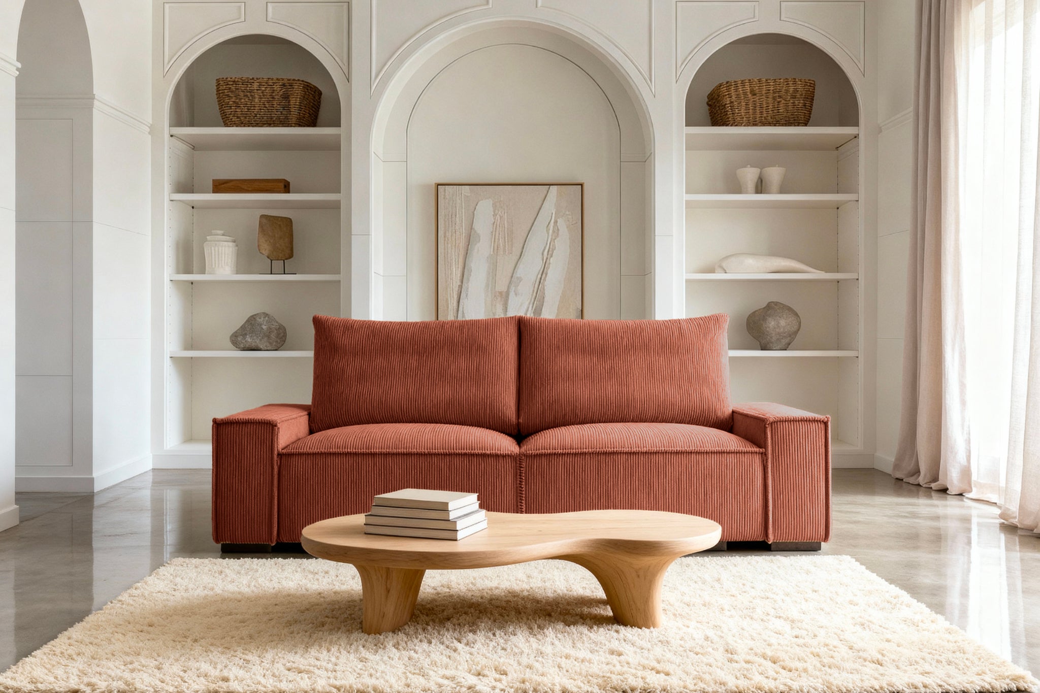 Un tissu texturé et lumineux qui allie douceur, résistance et caractère.