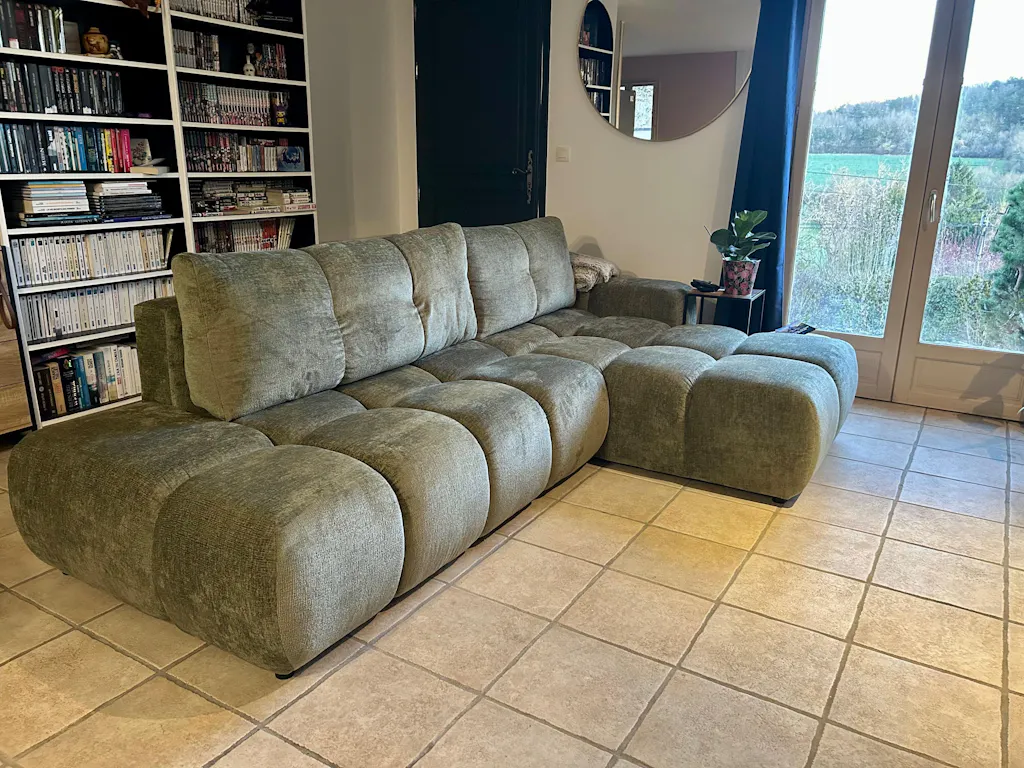 - Profondeur d'assise de la méridienne (à partir des coussins) : 132 cm