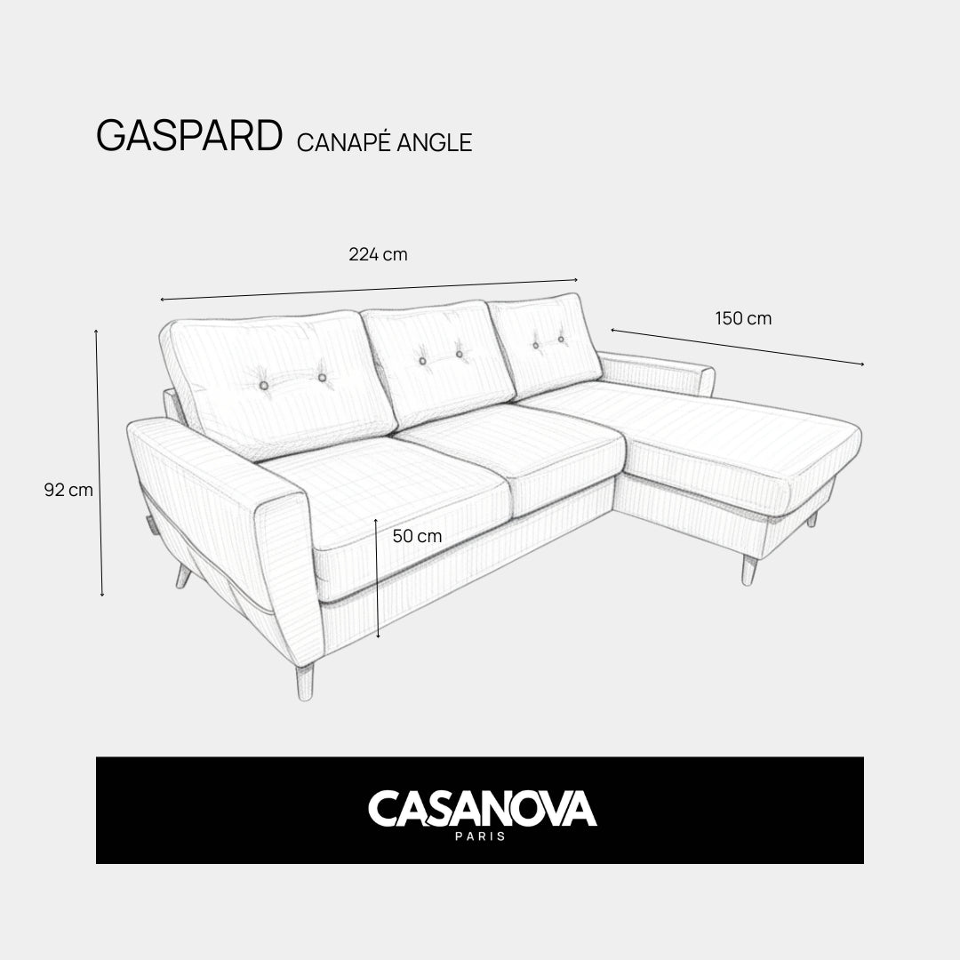 Angle (En regardant le canapé de face): Droit