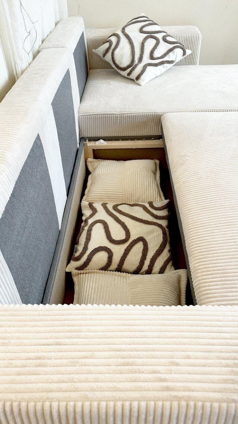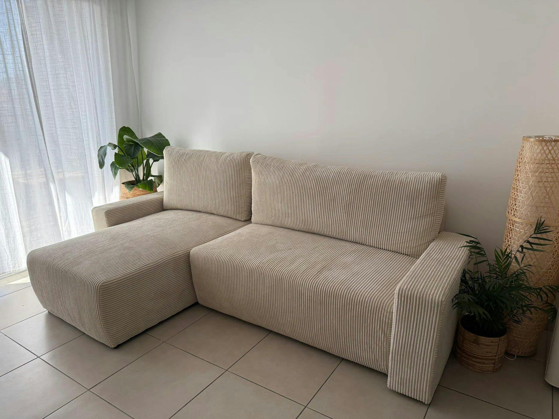 - Profondeur d’assise de la méridienne (à partir des coussins) : 110 cm